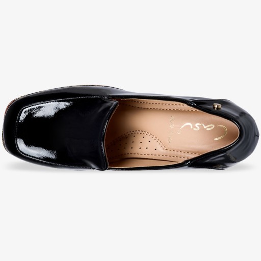 Czarne mokasyny damskie model ER23WX15-BS zostały wykonane z wysokogatunkowej, lakierowanej skóry ekologicznej, co gwarantuje doskonałą jakość i dopasowanie do stopy. Lakierowane mokasyny to eleganckie i stylowe obuwie, które doskonale łączy wygodę z modnym wyglądem. Przez dodanie elementów wężowych na obcasie i platformie model ten zyskuje nieszablonowy, efektowny wygląd. Podeszwa na klocku zapewnia stabilność i pewność kroku. Ta solidna podeszwa jest także odpowiedzialna za wyjątkową trwałość butów, dzięki czemu są one doskonałym wyborem na wiele różnych okazji. Amortyzująca wkładka soft znacząco poprawia komfort użytkowania i łagodzi bóle stóp. Mokasyny lakierowane na klocku to idealny wybór dla osób ceniących sobie wyrafinowany styl oraz wygodę. Można je nosić zarówno do eleganckich, formalnych stylizacji, jak i bardziej codziennych zestawień, dodając im szyku i klasy. Te buty dostępne na Casu są doskonałym uzupełnieniem garderoby dla osób, które stawiają na jakość, modny design i wygodę.