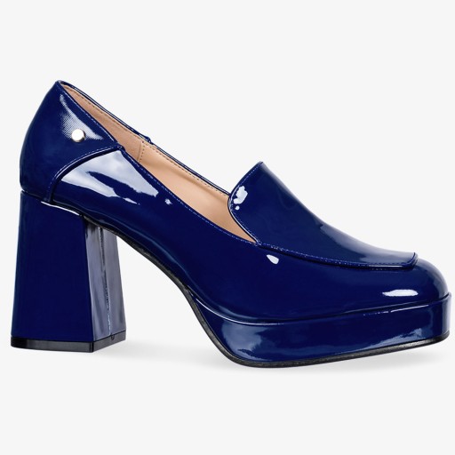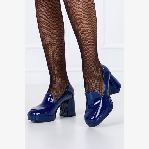 MOKASYNY DAMSKIE PÓŁBUTY LAKIEROWANE NA OBCASIE KLOCKU WKŁADKA SOFT NEW 40