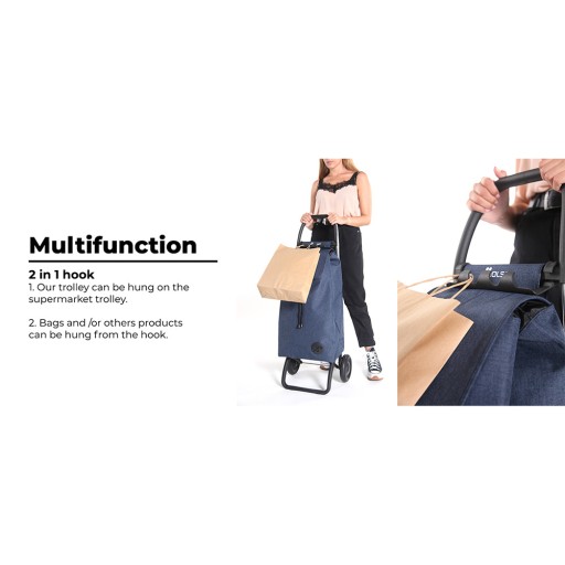 Wózekjest wyposażony w adaptowalne urządzenie do sprzęgania z wózkiem supermarketu, aby nie musieć zostawiać go przy wejściu do sklepu.