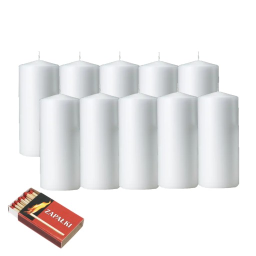 ZESTAW ŚWIEC BRYŁOWYCH 10CM - 10 SZTUK + 2X ZAPAŁKI