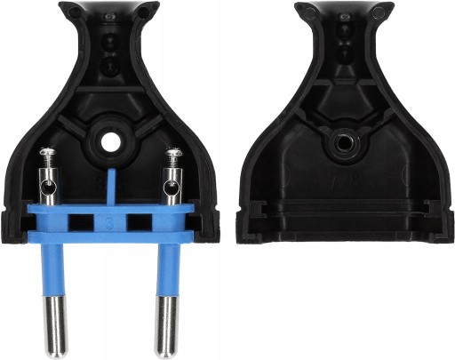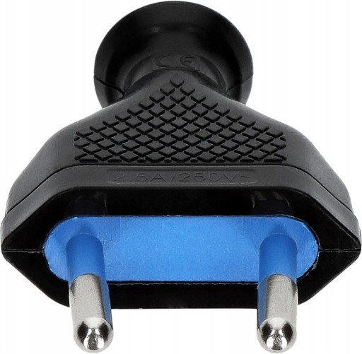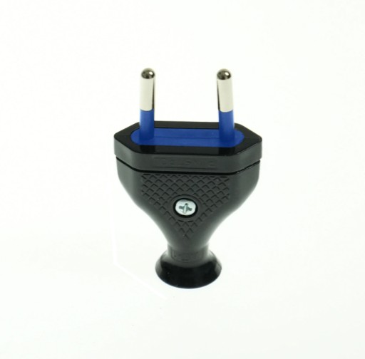 Wtyczka płaska bez uziemienia w kolorze czarnym.