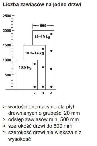 głębokość ±1,5 mm (przy drzwiach nakładanych),