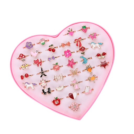 - Zapakowaliśmy te dziewczęce pierścionki w pudełka w kształcie serca, to dobry prezent dla Twojej księżniczki.