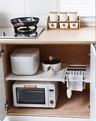Teleskopowa półka do przechowywania jest bardzo wygodna w codziennym życiu, rozciągają się w zakresie 90-160 cm. Taka półka pozwala maksymalnie wykorzystać wolna przestań w Twoim mieszkaniu.