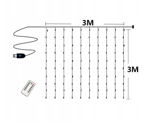 СВЕТОВАЯ ЗАВЕСА ЛАМПЫ ОКОННАЯ ГИРЛЯНДИЯ ПРОВОДА 300 светодиодов 3х3м USB + ПУЛЬТ ДИСТАНЦИОННОГО УПРАВЛЕНИЯ