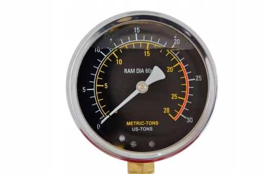 Manometr ciśnieniowy wyskalowany w tonach wypełniony glikolem.