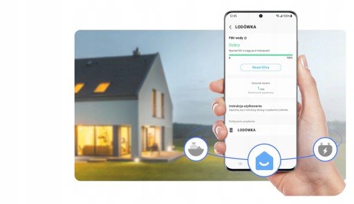 Zadbaj o lodówkę jeszcze łatwiej. SmartThings Home Care monitoruje urządzenia, sprawdza ich stan, w tym stan filtra wody i w czasie rzeczywistym wysyła alerty. Automatycznie powiadomi Cię o konieczności wymiany części, wykryciu problemu i zasugeruje rozwiązanie.