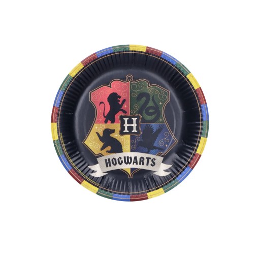 Talerze papierowe z motywem Harrego Pottera i emblematami Hogwartu - idealne dla fanów serii. Średnica 23 cm, piękne nadruki z wizerunkiem Harrego Pottera i emblematami Hogwartu. Opakowanie zawiera 8 talerzy. Praktyczne, łatwe w użyciu i bezproblemowe do zmywania. Dodają magicznej atmosfery i uczucia bycia w Hogwarcie. Doskonałe jako dekoracja na przyjęciach tematycznych.