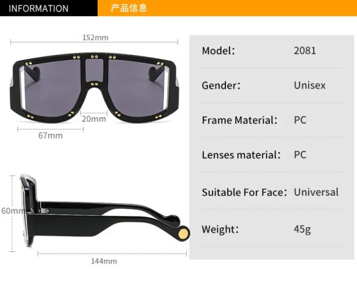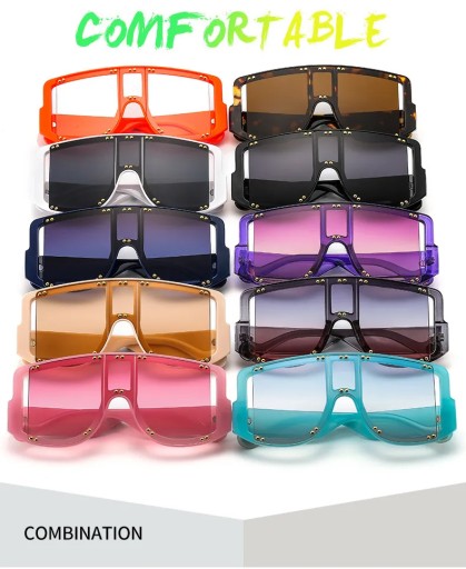 Солнцезащитные очки с заклепками в полурамке Y2K, женские солнцезащитные очки большого размера, мужская мода