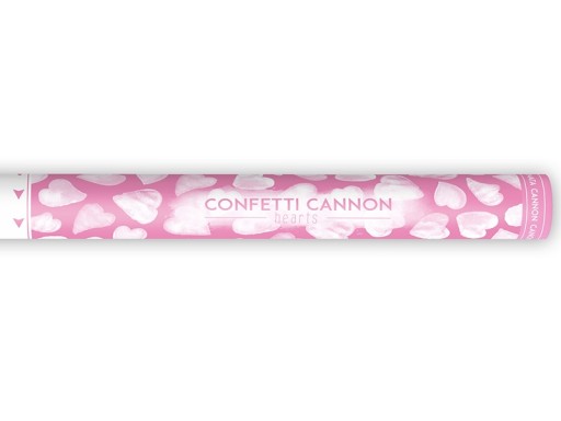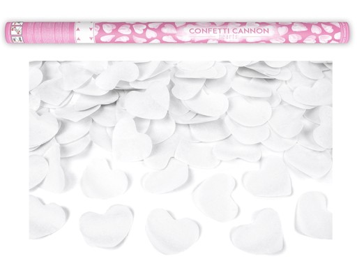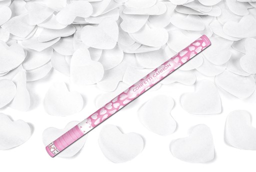 Tuba strzelająca bibułowymi sercami w kolorze białym, długość 80 centymetrów.