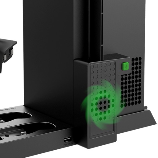 Wczepiany w tylną część podstawki moduł chłodzący skutecznie obniża temperaturę pracy konsoli. Zapobiegają przegrzaniu sprzętu przy intensywnych wielogodzinnych rozgrywkach.