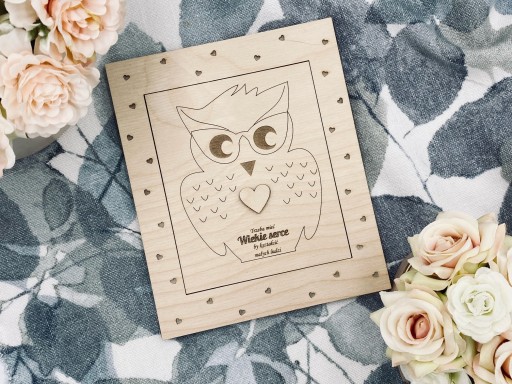 - personalizowana drewniana kartka z grawerowanym podziękowaniem/ życzeniami