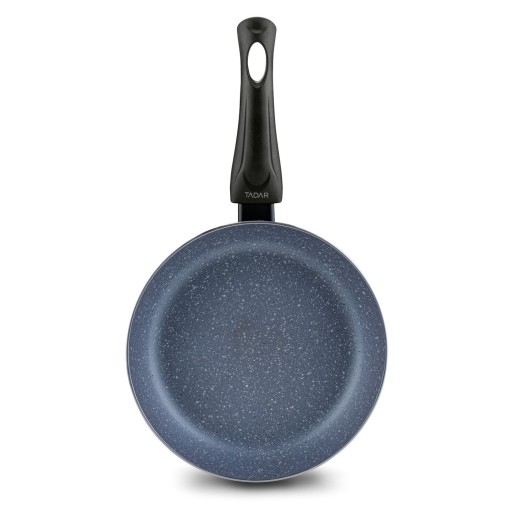 Zestaw 3 patelni nieprzywierających Tadar Roca 20 / 24 / 28 cm jest aluminiowy i chroni jedzenie przed przywieraniem. Ich korpus jest więc lekki i jednocześnie sprawia, że są poręczne. Dzięki temu też dobrze przewodzą ciepło. Są dobrze wyważone, co w połączeniu z wolno nagrzewającymi się uchwytami bakelitowymi da ci wysoki poziom komfortu użytkowania. Dno patelni działa na kuchenkach ceramicznych, elektrycznych i gazowych. Sprawia ono, że robienie posiłków jest szybsze, a przy tym energooszczędne. Wysokość rantu ułatwia mieszanie składników. Trwałość powierzchni smażenia patelni marmurowych typu stone Roco opiera się na powłoce non-stick. Nie zawiera szkodliwych substancji oraz może znieść wiele cykli ścierania. Komplet poleca się do wieloletniego użytku w domowej kuchni. Będzie też ozdobą przestrzeni do gotowania. Oprócz tego w zestawie jest komplet 5 miarek kuchennych. Możesz nimi odmierzać składniki sypkie i płynne w ilości 1,25-15 ml.