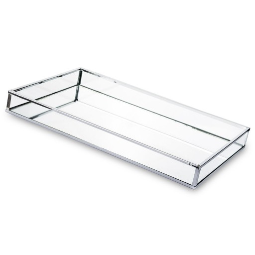 МЕТАЛЛИЧЕСКИЙ ПОДДОН ДЛЯ ЗЕРКАЛА 30x18см СЕРЕБРЯНЫЙ С ГЛАМУРНЫМ ЗЕРКАЛОМ