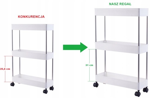 Nasze szafki posiadają wyższe półki niż pozostałe dostępne na rynku. Dzięki temu z łatwością zmieścisz większe pojemniki.
