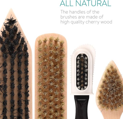 - Naturalny materiał: trzonki szczotek (z wyjątkiem szczotki do surowej skóry) są wykonane z wysokiej jakości drewna wiśniowego i wyjątkowo dobrze leżą w dłoni.