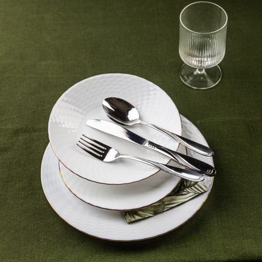 Sztućce są odpowiednio masywne, nie wyginają się, wykonane z bardzo dobrej jakości stopu chromowo-niklowego - stal nierdzewna.