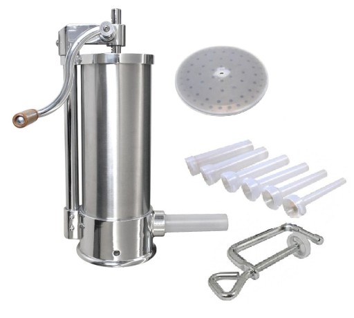 Wykonana z wysokiej jakości stali nierdzewnej, ręczna nadziewarka o pojemności 5,5 kg wsadu mięsnego, jest idealnym przyrządem do napełniania farszem osłonek (flaka) przy wyrobie wędlin. Nadziewarka pionowa, mocowana do blatu stołu