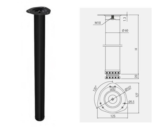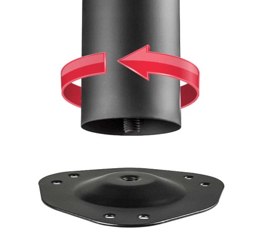 W skład nóżki wchodzą dwa elementy: Głowica montażowa z solidnej grubej stali oraz Podstawa metalowa.