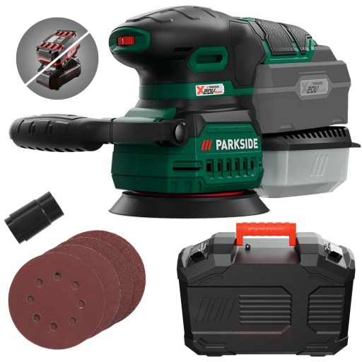 PARKSIDE® Akumulatorowa szlifierka mimośrodowa x 20 V (bez akumulatora i ładowarki) z walizką i akcesoriami w zestawie.