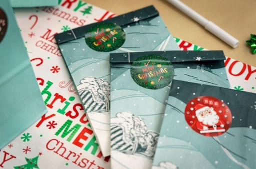 ŚWIĄTECZNE NAKLEJKI ozdobne MIKOŁAJ HO HO ZESTAW NAKLEJKI NA PREZENTY EKO