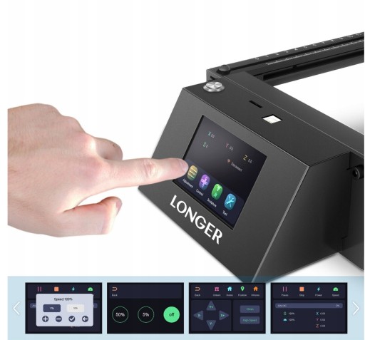 Maszyna do grawerowania ma ekran dotykowy, który nie tylko rozwiązuje problem polegania na komputerze do drukowania, ale także ma prosty interfejs operacyjny. Ponadto ma przycisk wyłącznika zasilania, który jest wygodniejszy i bezpieczniejszy.