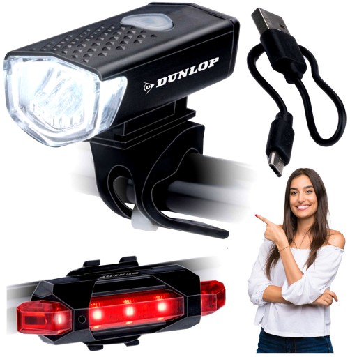 ✨Zestaw przedniej i tylnej lampki Dunlop charakteryzuje się małymi rozmiarami i bezproblemowym montażem. Komplet posiada 3 tryby świecenia w lampce przedniej i 4 w tylnej. Wysoka odporność na zachlapania dzięki certyfikatowi IP44.✨