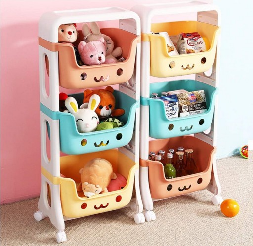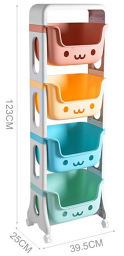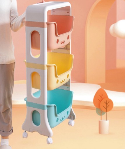 КНИЖНЫЙ ШКАФ ПОЛКИ ДЛЯ ИГРУШЕК ПОДСТАВКА 4 КОНТЕЙНЕРА НА КОЛЕСАХ