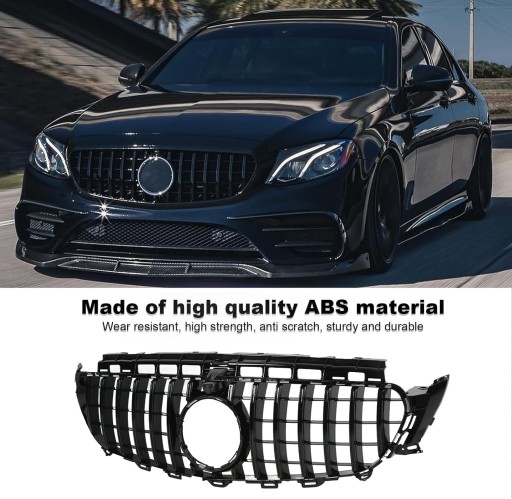 Osłona przedniej chłodnicy w stylu Panamericana GT z otworami na kamerę do Mercedesa klasy E W213 C238 S213 przed liftingiem 2017 do 2020 (pełna czerń, połysk).