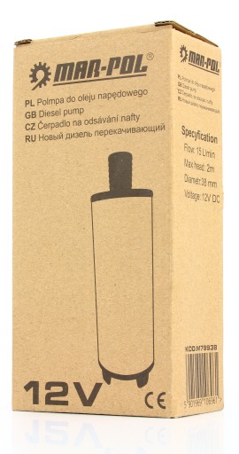 Pompka do paliwa, wody 12V // 38 mm cicha STAL NIERDZEWNA ZESTAW