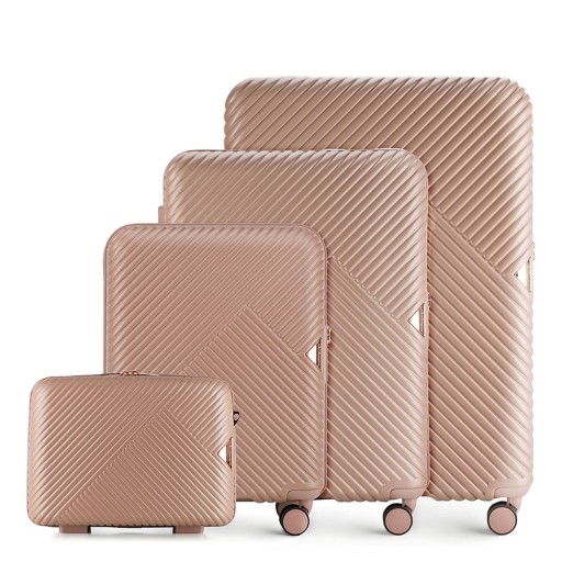 Komplet walizek z kolekcji GL Style. Walizki stworzone z polikarbonu z matowym wykończeniem. To designerski projekt z lśniącymi okuciami w kolorze różowego złota. Kółka wykonane z tworzywa sztucznego ABS z elastyczną powłoką. Wnętrze bagażu pokrywa beżowa podszewka z logo WITTCHEN. Nasza rada: gra kontrastów oraz geometryczne wzornictwo zadowolą kobiety podążające za bieżącymi trendami w modzie.wyposażone w cztery podwójne kółka ułatwiające manewrowanie; wysuwany uchwyt oraz gumową rączkę ułatwiającą przenoszenie bagażu; system TSA , bardzo przydatny w przypadku rewizji bagażu przez służby celne - gwarantuje on bezinwazyjne otwarcie walizki oraz jej ponowne zamknięcie, bez uszkodzenia zamka; komora główna z regulowanymi pasami zabezpieczającymi ubrania przed przemieszczaniem; kieszeń zamykana na suwak; dwie kieszenie z siatki zamykane na suwak; komora zamykana na suwak. W skład kompletu wchodzą: Kosmetyczka 56-3P-844 Mała walizka na kółkach 56-3P-841 Średnia walizka na kółkach 56-3P-842 Duża walizka na kółkach 56-3P-843Podane wymiary obejmują również elementy wystające, takie jak rączki czy kółka. Wymiary są przybliżone i mogą się różnić +/- 5%.