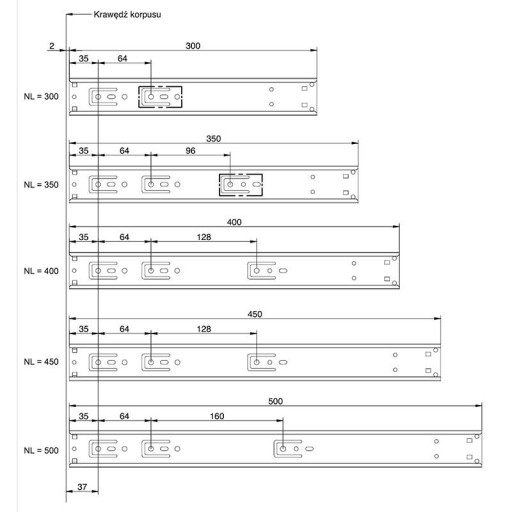 Prowadnica kulkowa 500mm push-open REJS 30kg
