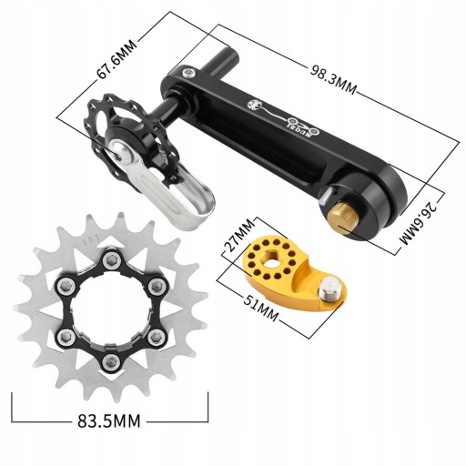 [Łatwa instalacja]: ten napinacz łańcucha montuje się bezpośrednio na wieszaku przerzutki roweru górskiego, aby zapewnić prosty, skuteczny i regulowany sposób napinania pojedynczego układu prędkości.