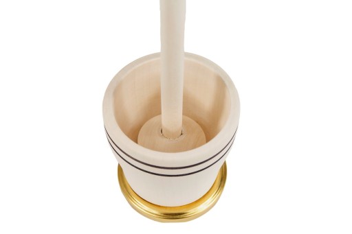 Maselnica wykonana z drewna klonu jawora, nielakierowana. Zintegrowany dekiel od słoika.