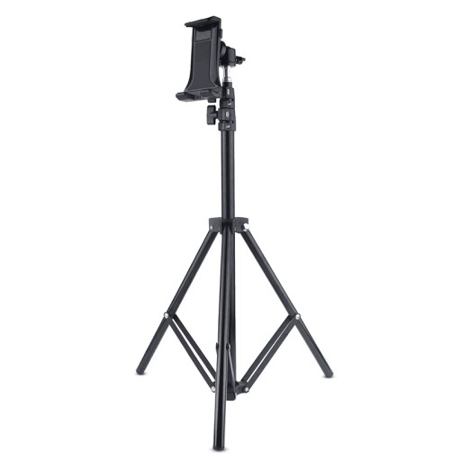 W zestawie znajduje się lekki i bardzo poręczny statyw fotograficzny z głowicą zakończoną standardowym gwintem 1/4 cala oraz kompatybilny uchwyt do telefonu lub tabletu