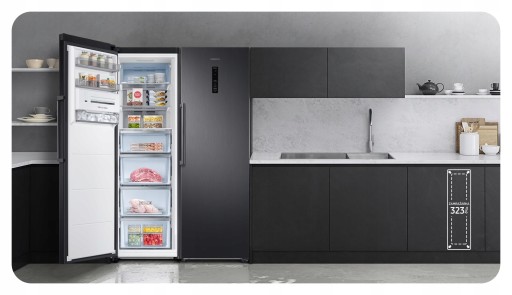 Urządzenie posiada dużą pojemność, ale pozostaje dopasowane do głębokości szafek kuchennych. Wzornictwo Cabinet Fit harmonijnie wpasuje się w Twoją kuchnię. Oferuje mnóstwo miejsca na przechowywanie cotygodniowych zakupów spożywczych i znacznie ułatwia porządkowanie produktów, byś mógł szybko znaleźć i wyjąć to, co potrzebne.