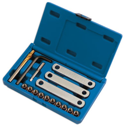 - zestaw do wymiany uszkodzonych gwintów zacisku hamulcowego z nowym wkładką gwintowaną,