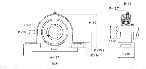 * Informujemy, że ze względu na różne partie produkcyjne poszczególnych producentów wymiar H1 zespołów łożyskowych UCP 201,202 i 203 może się różnić od wymiaru podanego w tabeli. Producenci czasem wykorzystują do tego oprawy P 204 (wówczas wymiar zmieni się na H1=33,3mm). Jeśli jest to wymiar bardzo dla Państwa istotny prosimy o wcześniejszy kontakt, ustalimy wtedy jaką mamy aktualnie dostawę.