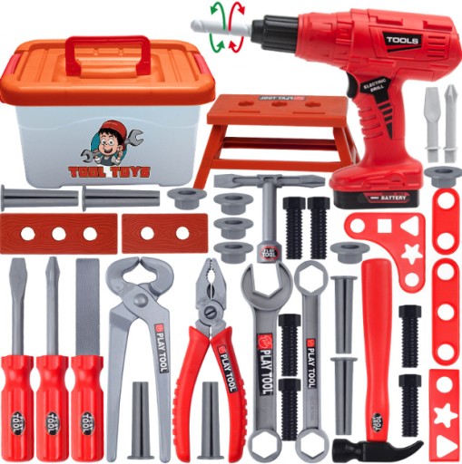 ДЕТСКИЙ НАБОР ИНСТРУМЕНТОВ, 42 ПРЕДМЕТА, ДРИЛЬНЫЙ СТАНОК, КОРОБКА «Сделай сам»