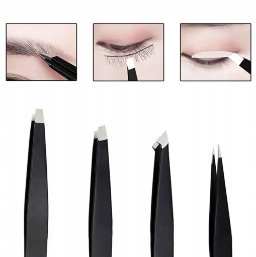 - Zestaw 4 profesjonalnych pęset do regulacji rzęs i brwi.