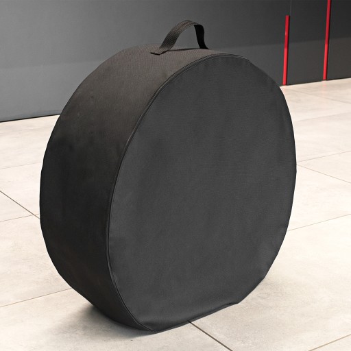 Pokrowiec na koło zapasowe/dojazdowe wykonany z bardzo mocnego materiału. Posiada praktyczny uchwyt do przenoszenia oraz dwa rzepy minimalizujące przemieszczanie się koła w samochodzie. Wyposażony w zamek błyskawiczny, dzięki czemu możemy szczelnie zamknąć koło w środku.
