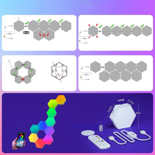 ШЕСТИГРАННАЯ СВЕТОДИОДНАЯ ВСПЫШКА ИНТЕЛЛЕКТУАЛЬНЫЙ RGB ПУЛЬТ ДИСТАНЦИОННОГО УПРАВЛЕНИЯ BT ПРИЛОЖЕНИЕ 10 ШТ.