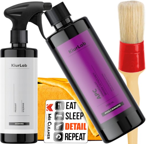 Kompletny zestaw 4 produktów, dzięki którym dokładnie wyczyścisz swój samochód.