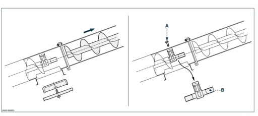 Łożysko pośrednie typu XLR jest elementem podtrzymującym i łączącym poszczególne sekcje ślimaka w podajnikach i przenośnikach ślimakowych o przekroju rurowym.