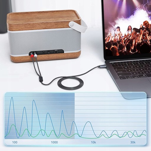 Kabel został wyposażony w wysokiej jakości przetwornik dźwięku, dzięki czemu przesyła muzykę w niezmienionej jakości. Nie ma opóźnień i nie przerywa.