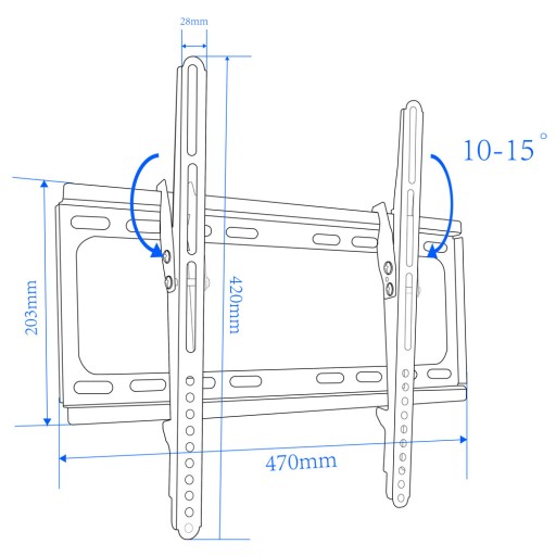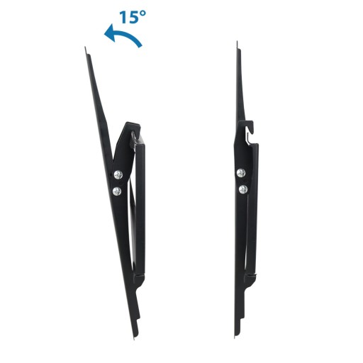 Metalowy, mocny uchwyt naścienny do telewizorów w rozmiarze od 26” do 70”. Łatwy w montażu. Zgodny ze standardem VESA 75x75mm – 400x400mm. Posiada w zestawie małą poziomicę ułatwiająca wypoziomowanie uchwytu. Uchwyt posiada możliwość regulacji nachylenia.