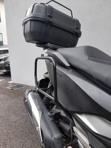 Stelaż montuje się do seryjnych punktów mocowań skuterów honda ADV350 oraz Honda Forza 300 oraz 350 roczników 2017 do obecnych modeli. Z tym 2024.