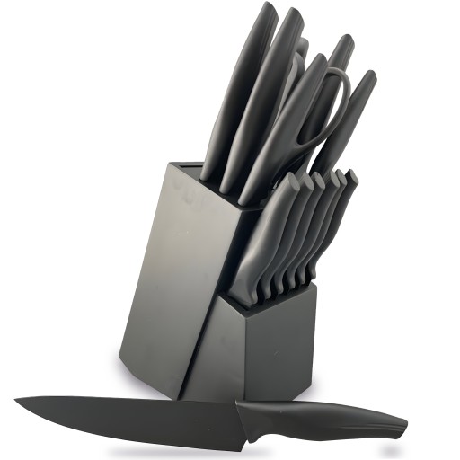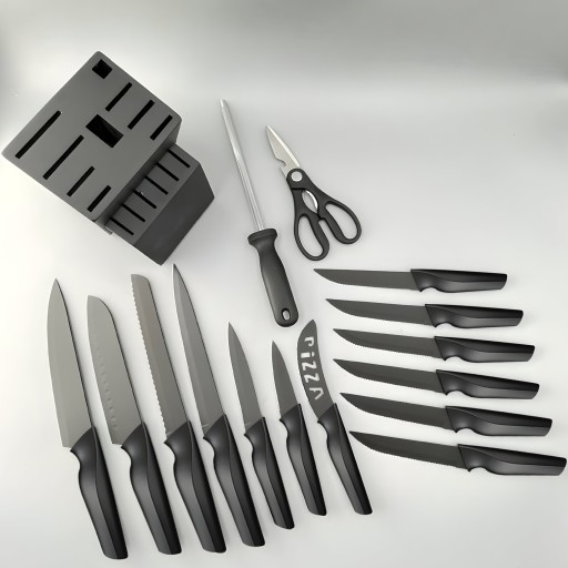 Nasz komplet posiada blok na noże z 15 elementami, który pomoże utrzymać ład i porządek w Twojej kuchni. Dzięki temu blokowi, nie tylko masz wszystkie niezbędne noże pod ręką, ale również możesz je bezpiecznie przechowywać, co jest kluczowe dla zachowania ich ostrości i stanu. Dzięki niemu unikniesz problemu zagubionych lub uszkodzonych noży. Twoje narzędzia kuchenne będą zawsze w gotowości do użycia.