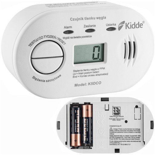 - Sensor: Opatentowany elektrochemiczny sensor CO firmy KIDDE
