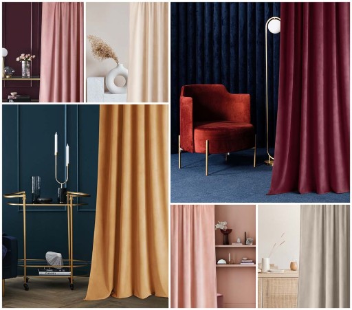 ✨ Delikatnie odbijający światło welur pozwala wyeksponować głębię koloru i stworzyć we wnętrzu przytulny nastrój. Gęsty splot i wysoka gramatura materiału tworzą efekt przyciemnienia pomieszczenia.